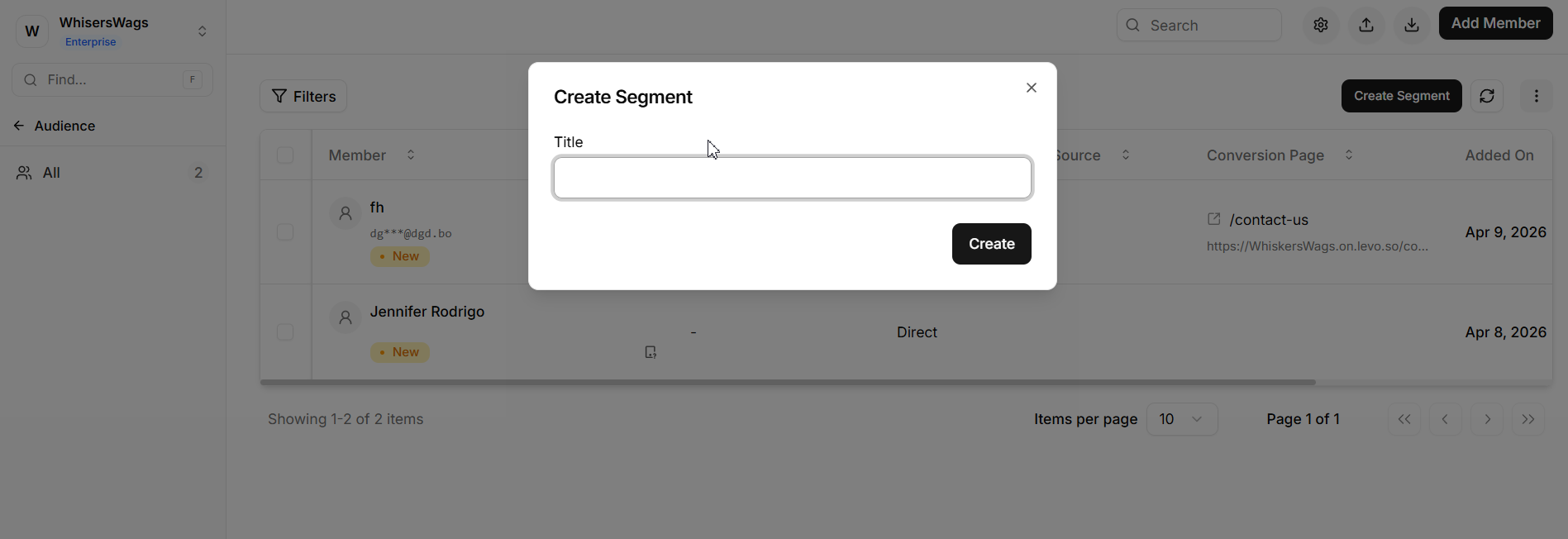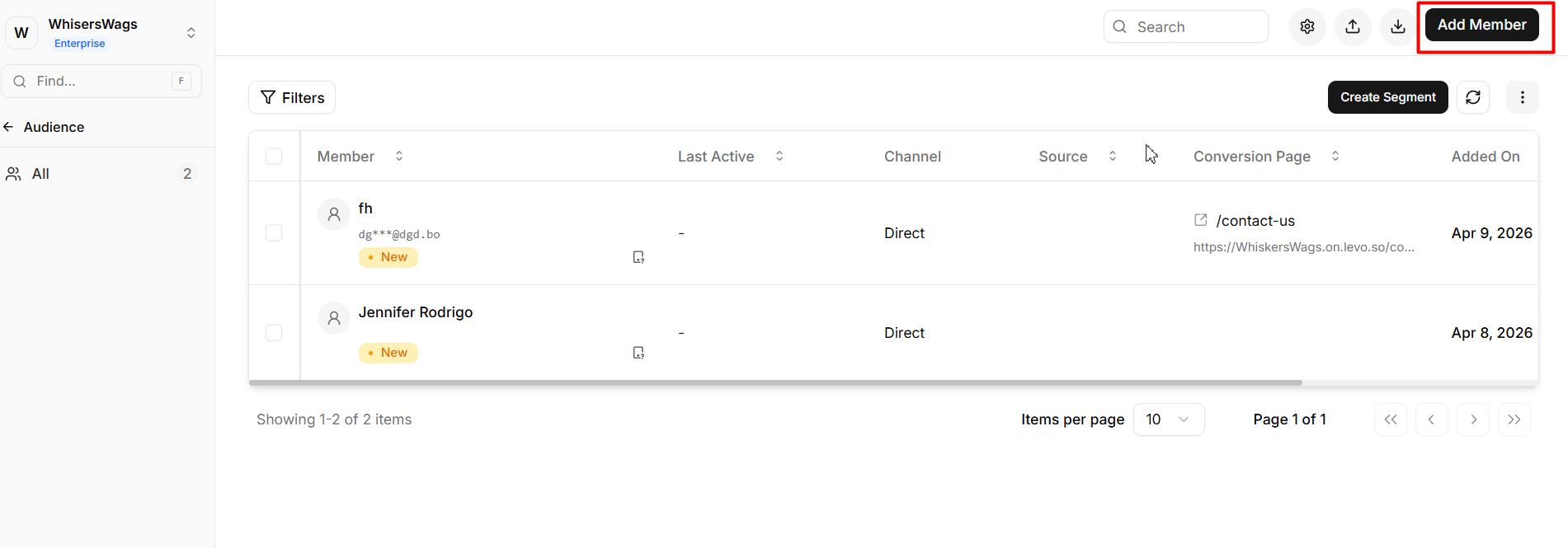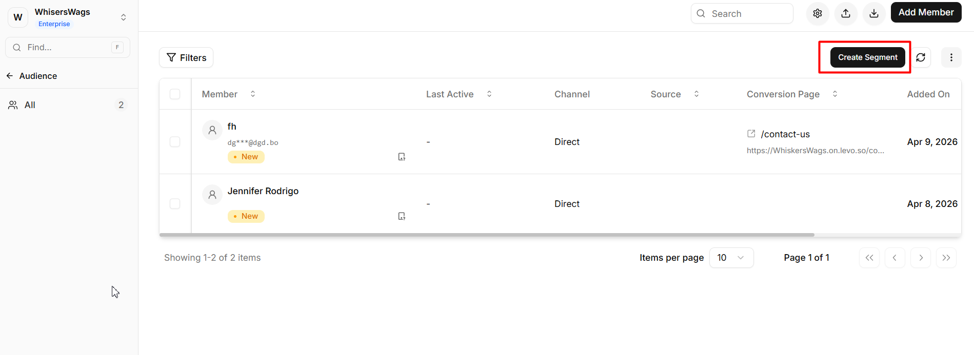 The primary interface will load a comprehensive table of all your Members. Your saved Segments (custom filters) are conveniently listed in the secondary sidebar for quick targeting.