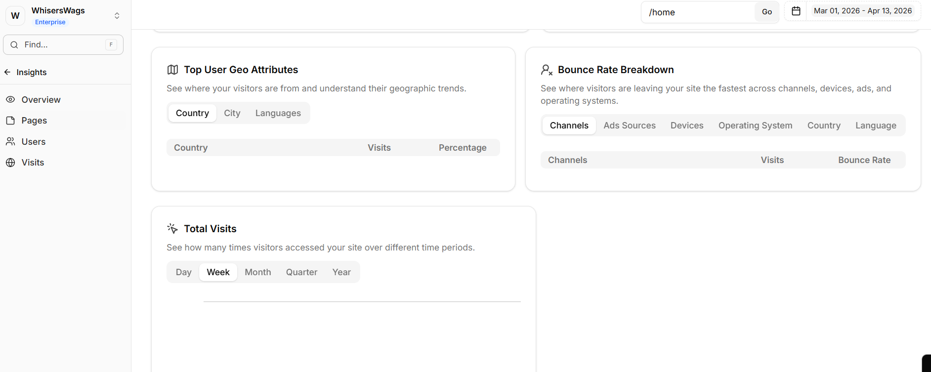Visits: Your true total sessions. Bot traffic is rigorously excluded from this number (though the bot count is quietly displayed separately for context).