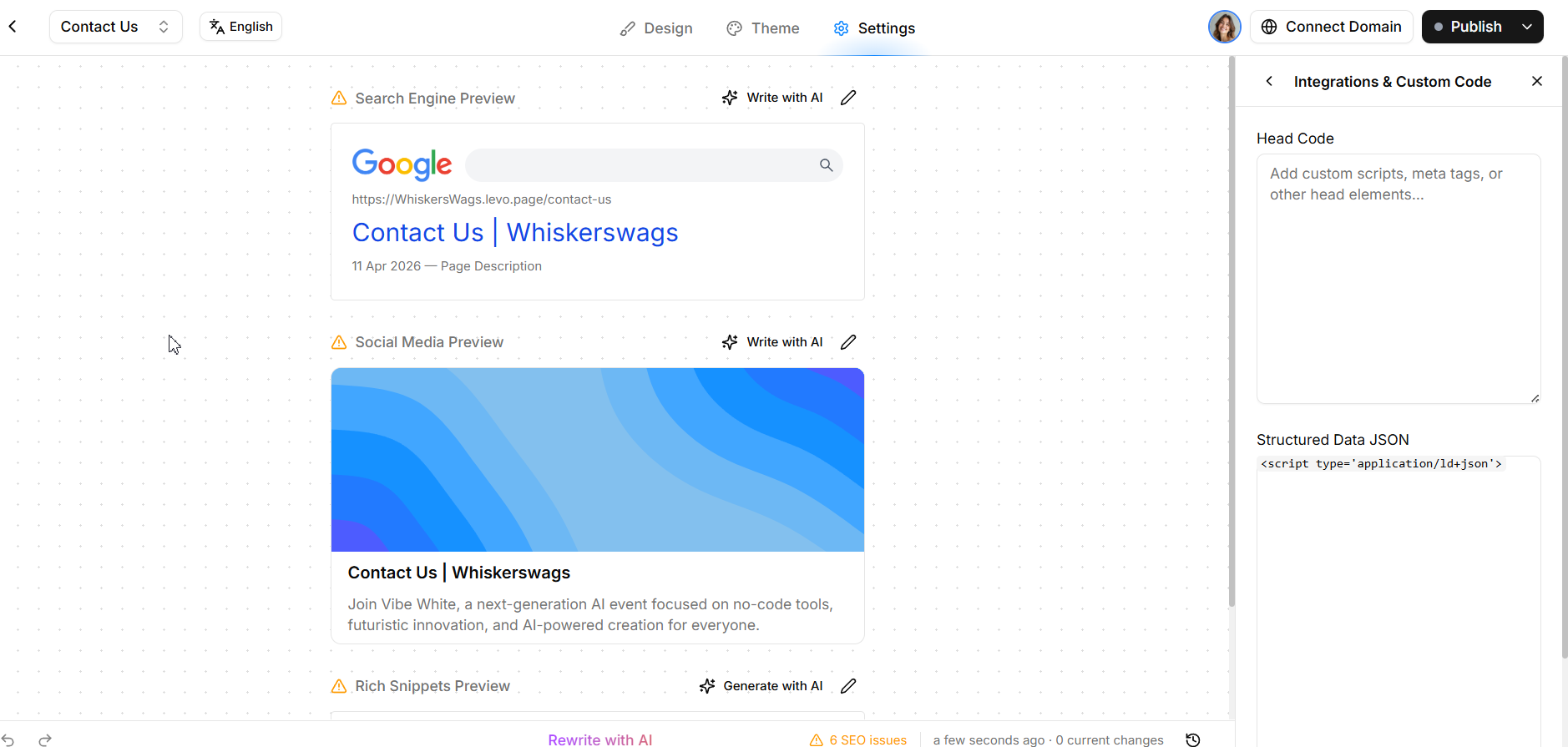 Do not paste SEO Schema markup into standard custom code blocks! To ensure search engines read your markup flawlessly, always paste it into the dedicated Structured Data field located within your Page Settings.
