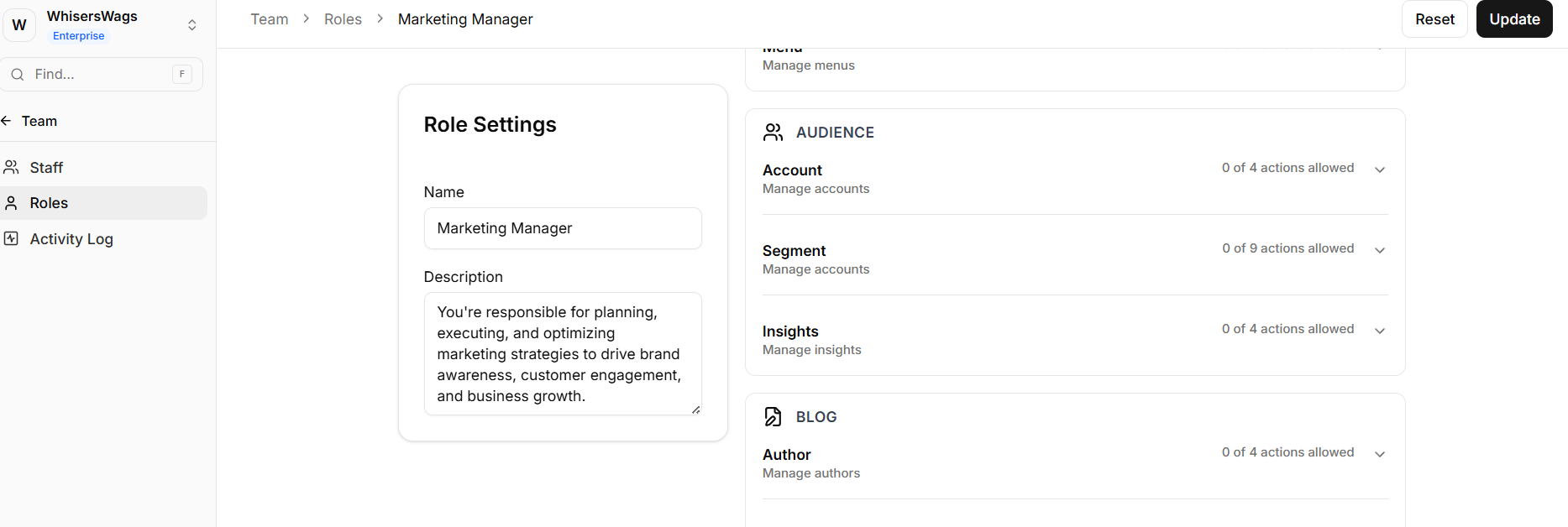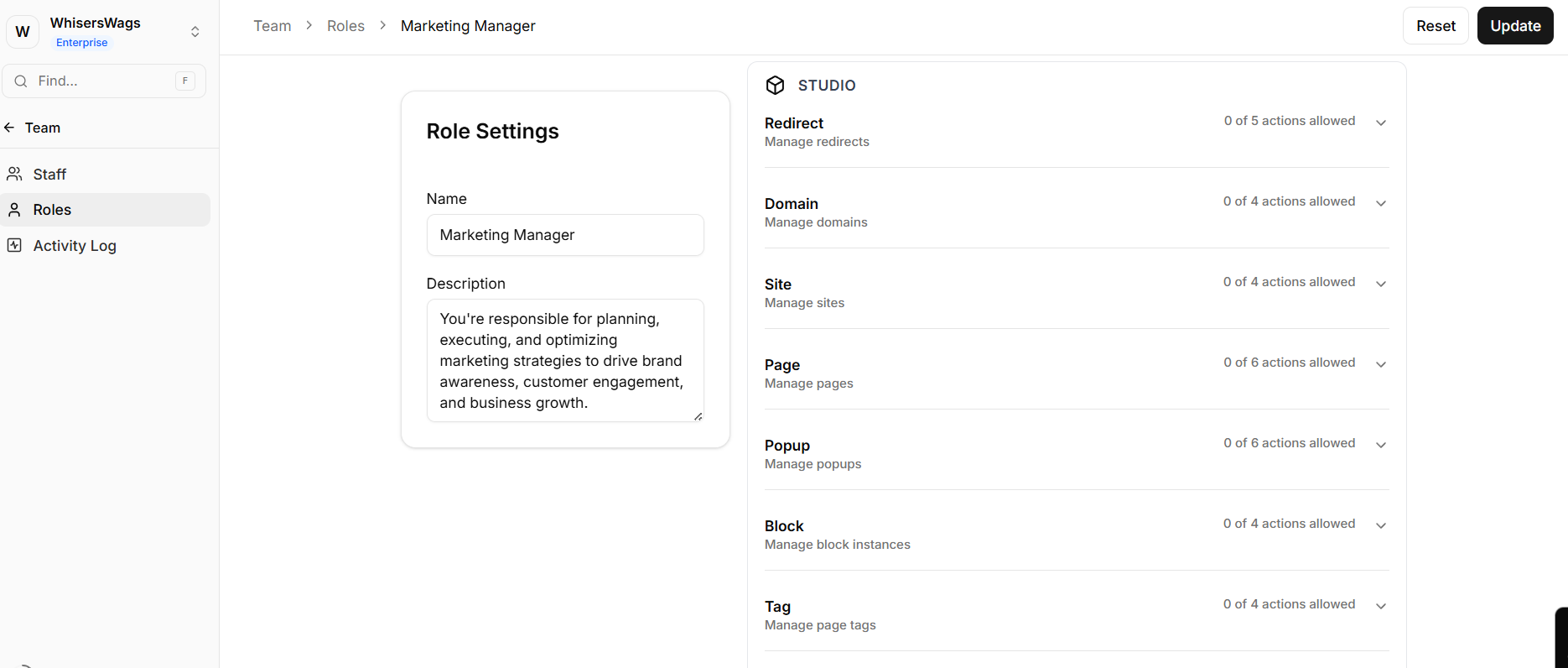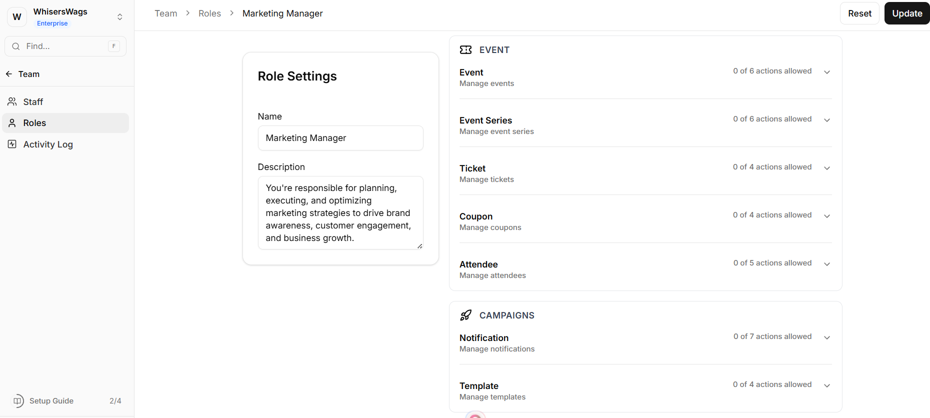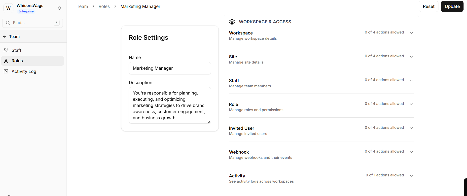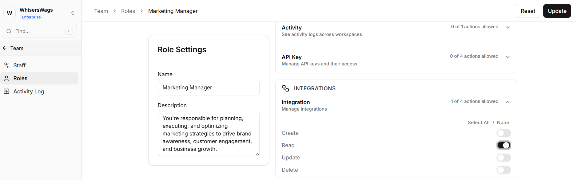 A Role is a defined set of permissions that determines what a team member can view and perform within the platform.