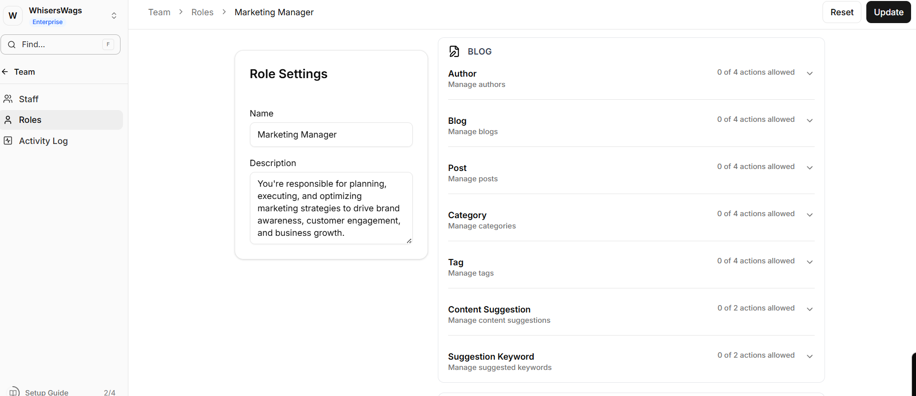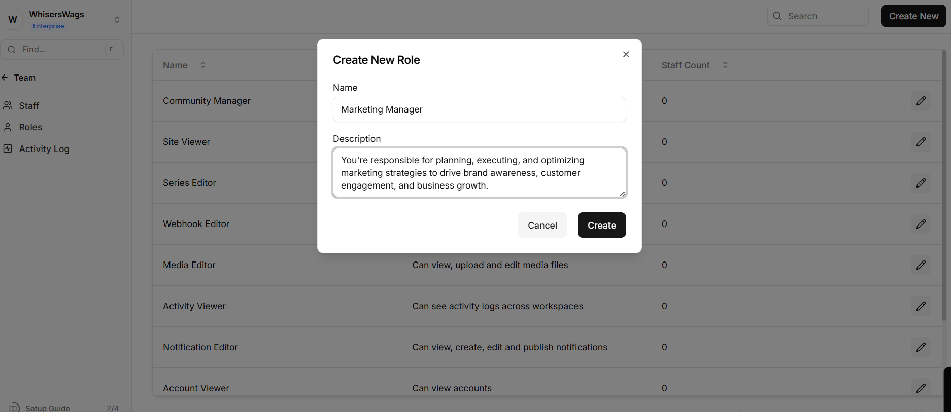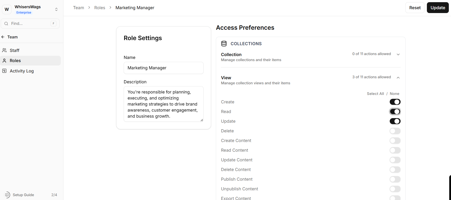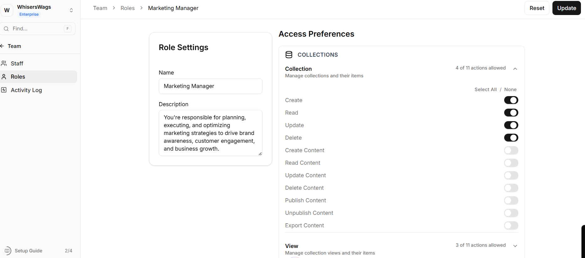 A Role is a defined set of permissions that determines what a team member can view and perform within the platform.
