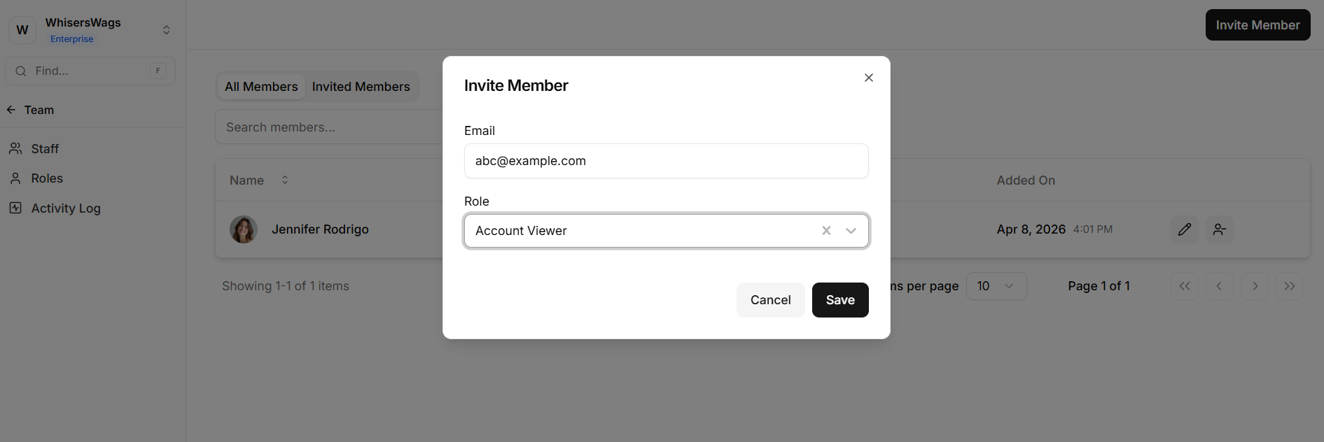 Important: If you have not created a custom role yet, do that first in Roles so you can assign the right level of access on invite.